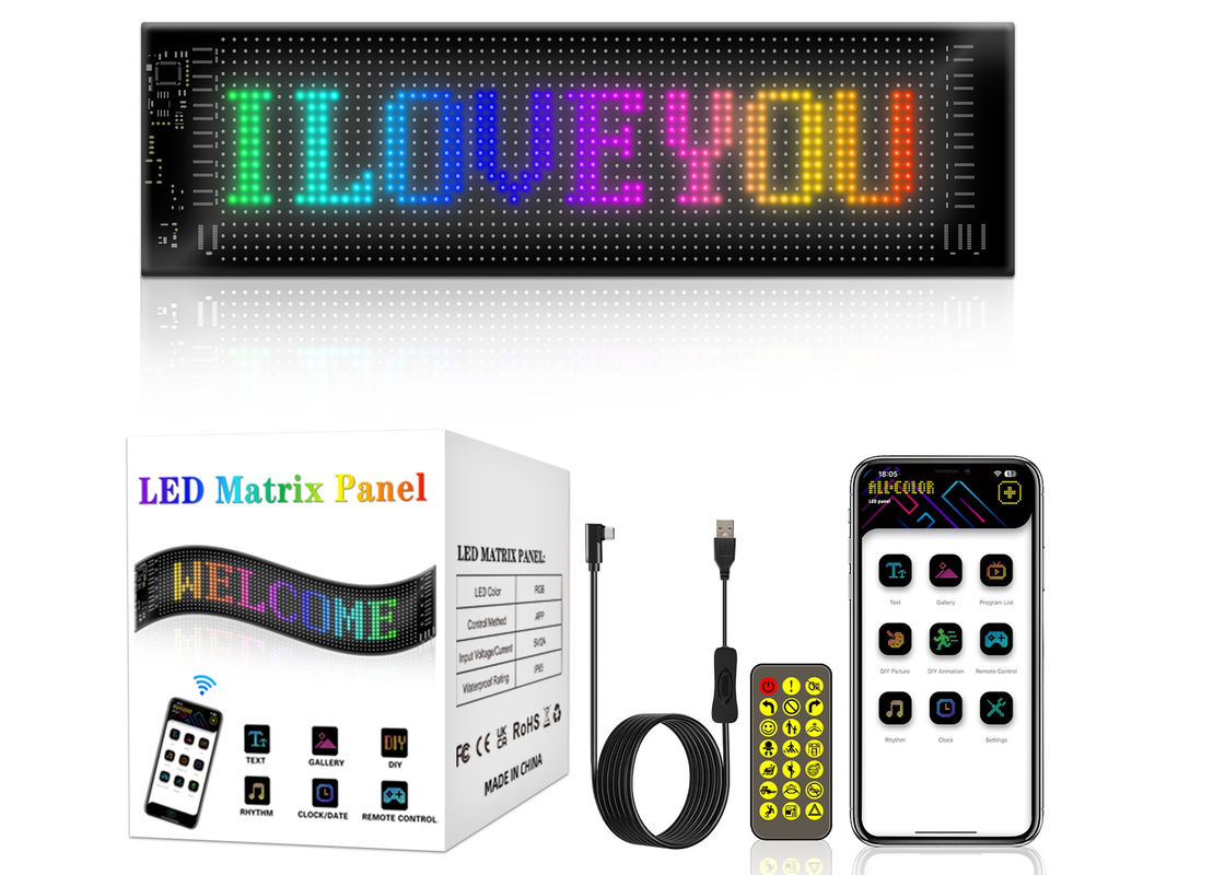 App Control LED Sign Board 20*64 Flexible USB Programmable Custom Scrolling Message Car Signs Digital Display